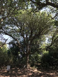 椿の島、伊豆大島の岡田港を見下ろす高台にその椿の古木はあります。苗の平(なえのひら)の大椿、またの名を仙寿椿(せんじゅつばき)と呼ばれるこの椿は、苗の平の椿山の中でも特に大きな椿です。