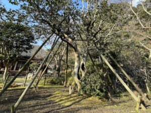 「奈良の三銘椿」の一つ白毫寺五色椿。花は紅、白、桃色、絞りなどに割き分けます。8年ぶりに訪ねてみました。一時期樹勢が弱っていたものの手当てをして延命し、今年も花を咲かせていました。