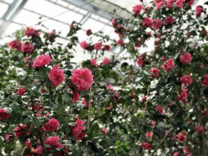 富山県中央植物園には日本国内では珍しい、トウツバキの温室があります。トウツバキ(Camellia reticulata Lindl.)は中国の雲南地方が原産のツバキで、品種は100種以上あります。