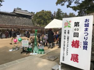 毎年3月に松江城の入り口、馬溜広場を会場に開催されている椿展。主催は山陰地方のつばき愛好家が集まる山陰カメリアンクラブです。椿の会であるコーベ・カメリア・ソサエティのツアーで2018年3月に第49回椿展を訪問しました。