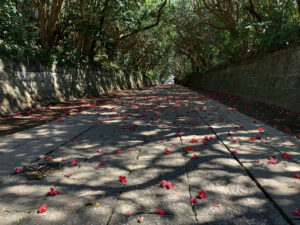 【椿の名所】酒列磯前神社の樹叢のツバキ