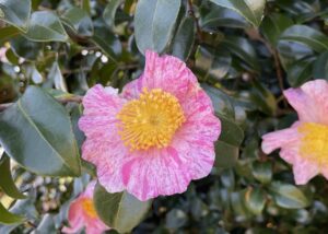 「飯野桃」は埼玉県深谷市に、推定樹齢600年と400年と言われた2本の古木ありました。園芸サザンカの発達初期の生き残りと思われている品種です。一重に優しい桃色というシンプルな姿は、園芸が発展するほど、大きく、華麗に、デコ […]