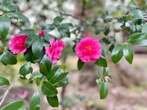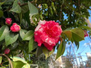 寒空の下で明るい色で咲くサザンカに元気を貰いました。