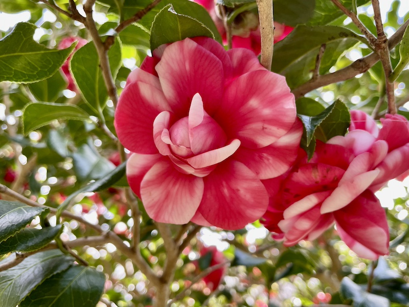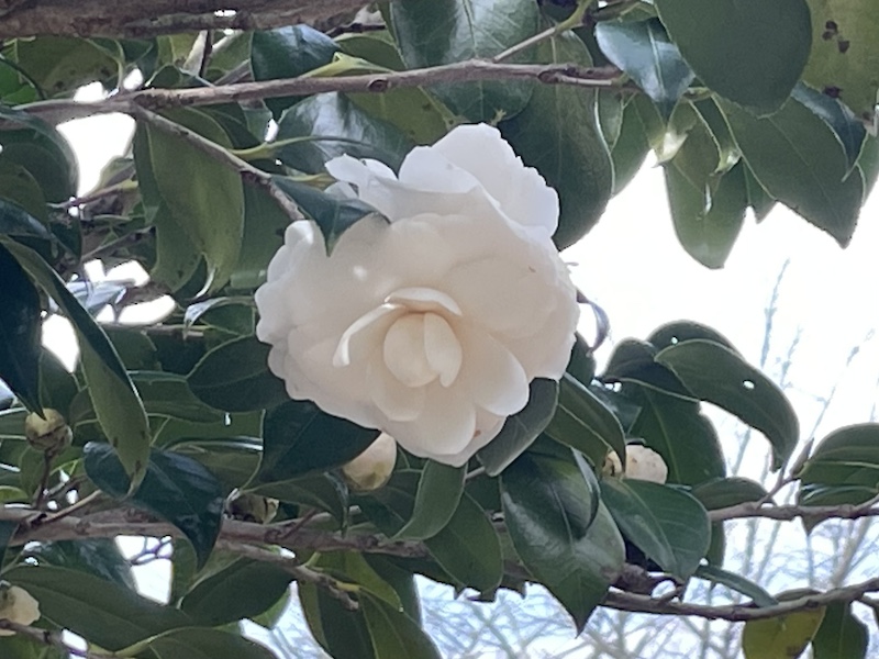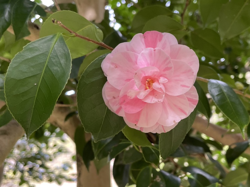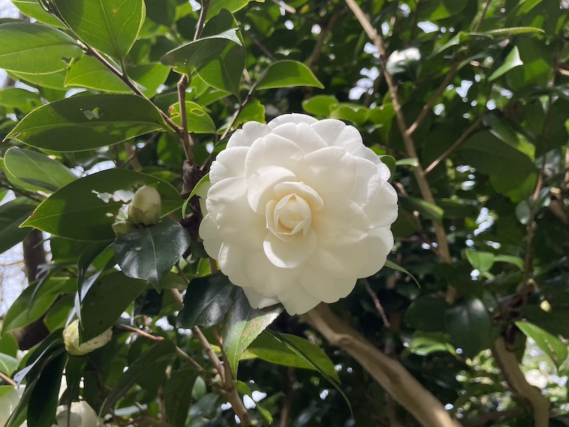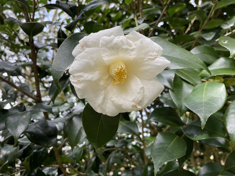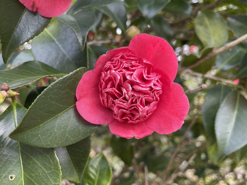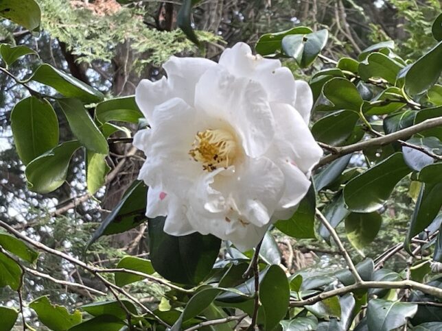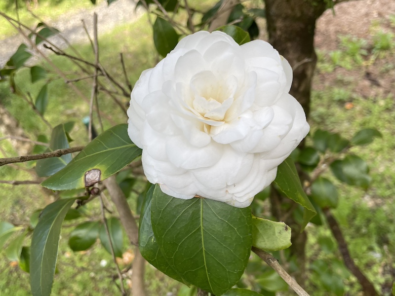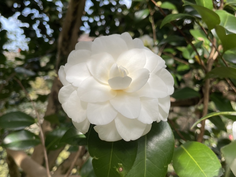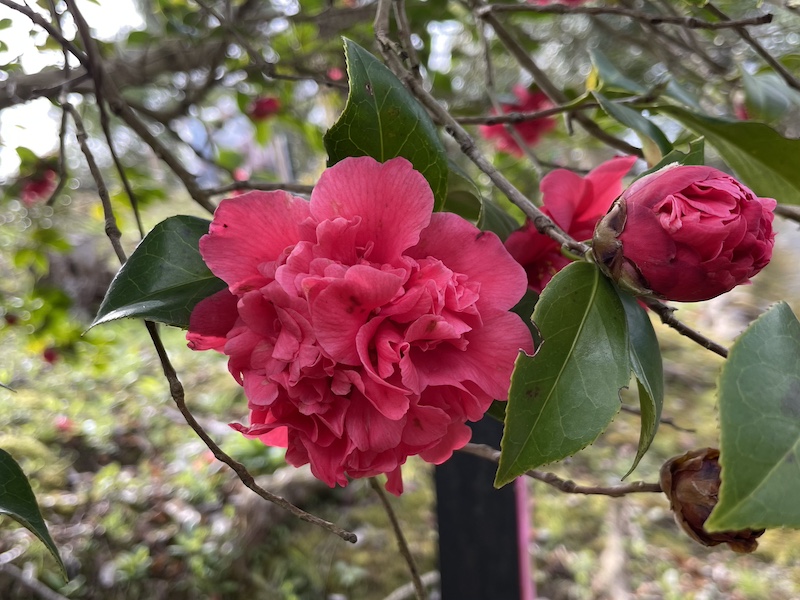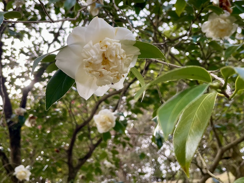 京都の寺社には見学できないところ、撮影禁止のところがあるので、そうした寺院のツバキを見たり撮影できるのは大変嬉しいことです。もちろん園芸品種として販売されているものもありますが、原木から直接採られた苗が育った木に咲く花を見るのは、やはり感慨もひとしおです。