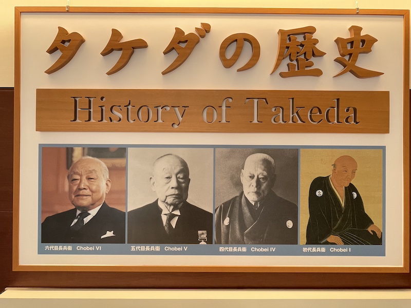 1781年の創業以来の武田薬品工業の社史とともに、本草学の本、解体新書の写しなどが展示されています。タケダの歴史というパネルには初代長兵衛と4代、5代、6代目長兵衛を名乗った方々の写真がありました。6代目がツバキ園を作った方です。