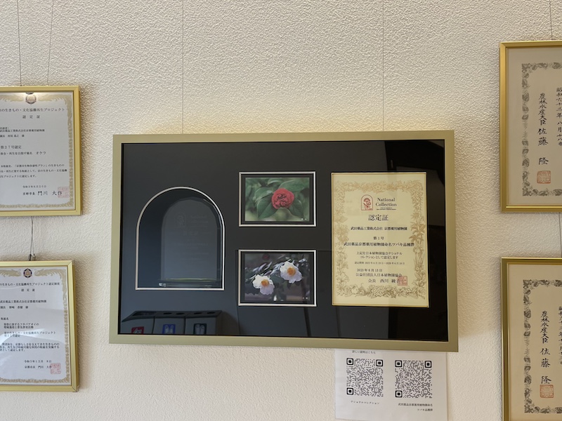 ナショナルコレクションは、野生種、栽培種に関わらず、日本で栽培される文化財、遺伝子資源として貴重な植物を守り後世に伝えてゆくことを目的に、(公社)日本植物公園協会が行う植物コレクションの認定、保全の制度によって認定されたコレクションです。「武田薬品京都薬用植物園命名ツバキ品種群」はその第一号として2018年に認定されました。